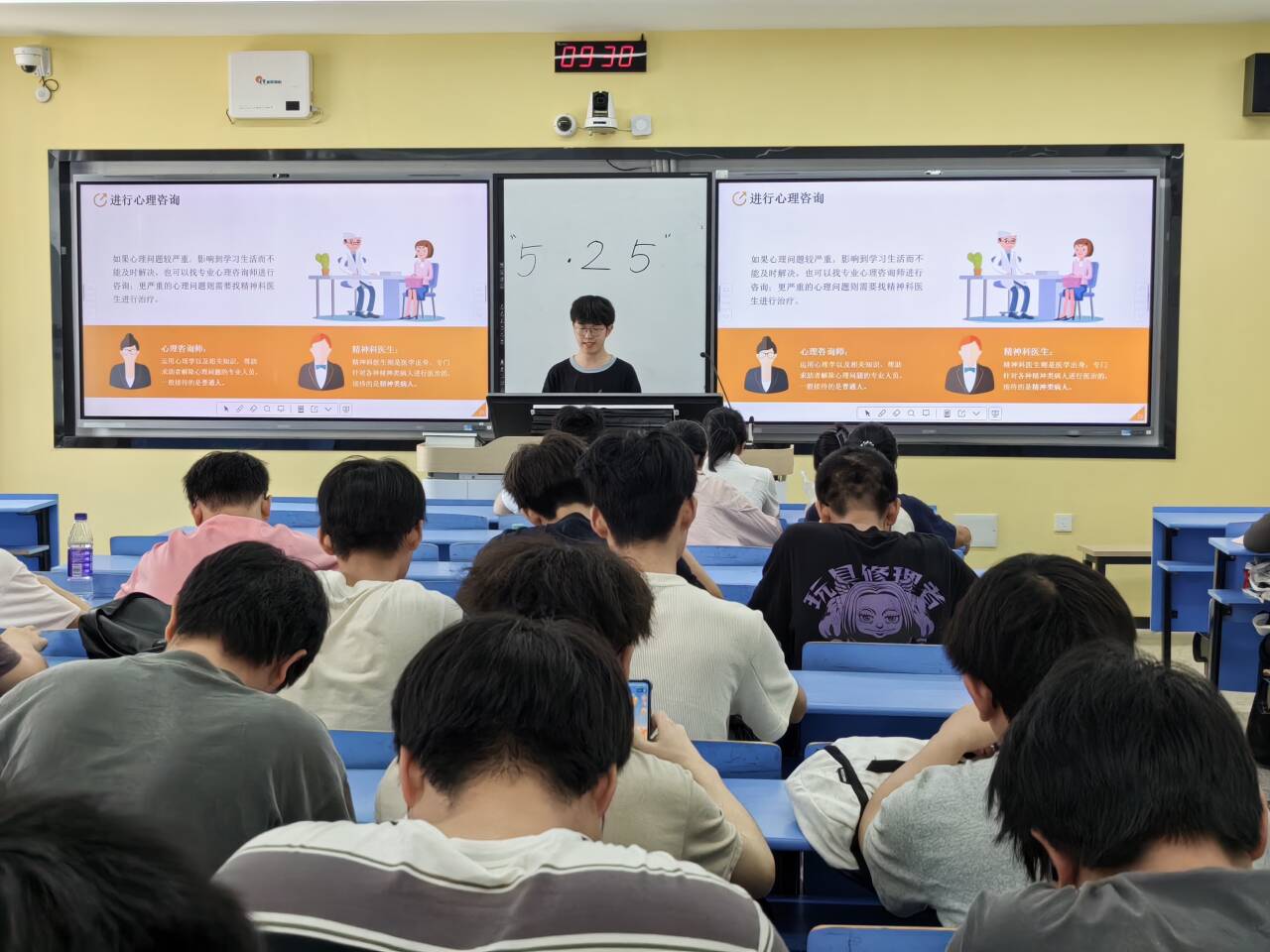 心理班會開始,班長通過輕松有趣的破冰小游戲迅速點燃了現場氣氛。隨后,活動進入核心環節——“心靈探索站”。心理委員結合大學生常見的學習壓力、人際關系、未來規劃等話題,分享了實用的心理健康知識和自我調適技巧,如識別壓力信號、進行積極心理暗示、建立有效溝通模式以及科學管理時間等。講解深入淺出,貼近同學們的實際學習生活狀態。