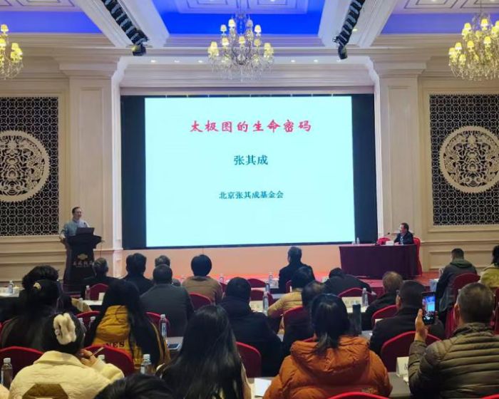 國學大師張其成以“‘太極圖’的生命密碼”為主題,與同學們分享了自己尋找真正的太極圖這一過程和對太極圖的一些感悟。他認為真正的太極圖應該與八卦掛鉤,展示了當今學術界公認的明代趙撝謙《六書本義》中真正的太極圖。而他自己經考證發現最早的太極圖是南宋時期的張行成,他在《翼玄》中把太極圖叫“易先天圖”。他以明代趙仲全《道學正宗》中的太極圖為例,為我們仔細解讀了太極圖背后的深意。他指出太極圖作為中華文明之標識,其陰陽運動、循環往復之道,恰似生命一氣周流、身心平衡韻律。從根源上提升了中醫診療境界,為新安醫學理論創新提供了關鍵文化支撐,拓寬了傳承視野。