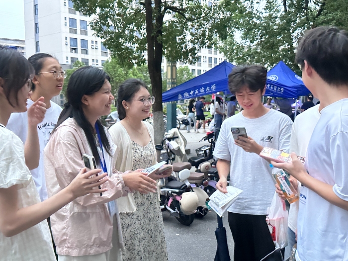 圖為志愿者們為新生熱情介紹校園相關情況,助力新生盡快熟悉校園環境。陳笑微 供圖