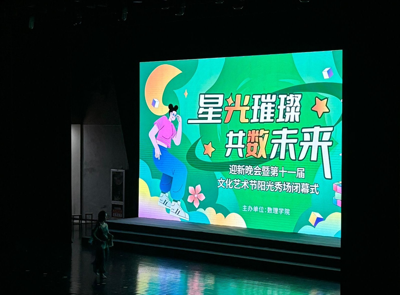 12月1日晚,我校數理學院舉辦了主題為“星光璀璨,共數未來”的迎新晚會。一共分為三個篇章,分別為“與理相遇,共赴美好”、“勵青春志,創(chuàng)數理夢”和“揮灑青春,逐夢數理”。大一新生們日日夜夜準備的節(jié)目最后呈現的非常完美,朗誦《青春向黨,強國有我》展現了大一新生勵志奮發(fā)圖強的決心;小品《天上不會掉餡餅》展現了大一新生始終牢記防詐騙,不會輕易相信來路不明的網站;武術《精忠報國》展現了大一新生的斗志;樂器串燒《望千年》中吹簫彈古箏展現了大一新生多才多藝的一面……最后老師們和學長學姐們?yōu)樾律鷤児餐R唱《永遠都會在》,向新生傳達在大學里你永遠都不會只是孤身一人,有同學的陪伴,有學長學姐的照顧,與此同時還有老師的悉心問候。