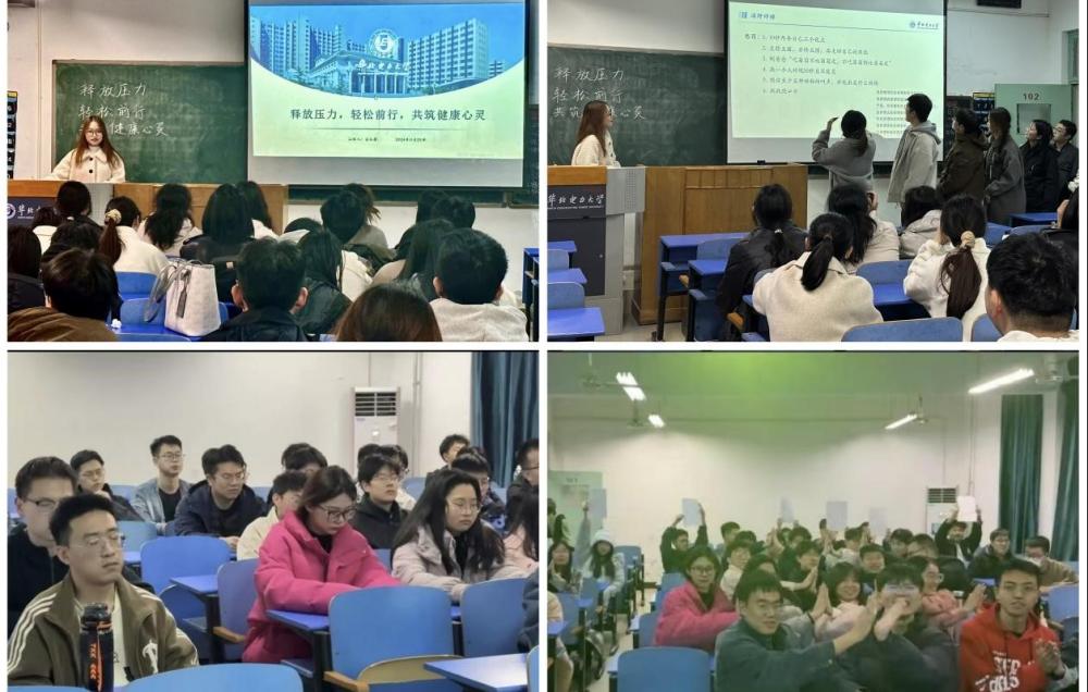 碩電力237班組織“拒絕焦慮,拒絕內耗,與壓力和諧共處”心理主題班會。心理委員向大家介紹大學生常見的心理壓力和精神內耗問題,并帶領同學們嘗試呼吸放松法來減輕焦慮感,集中注意力。隨后,大家將內心最苦惱的事情寫在紙上折成紙飛機,并一起放飛,釋放壓力。碩電力2310班圍繞“研途心旅:研究生壓力的探索與應對”主題開展相關活動,活動內容包括壓力來源與識別、壓力影響與評估、壓力應對策略與方法、校園資源支持與利用以及自我成長與壓力轉化動力五個部分。