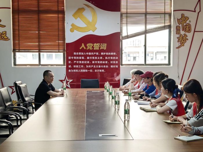 圖為一點食品科技有限公司負責人為團隊介紹公司的發(fā)展史。吳敏松供圖