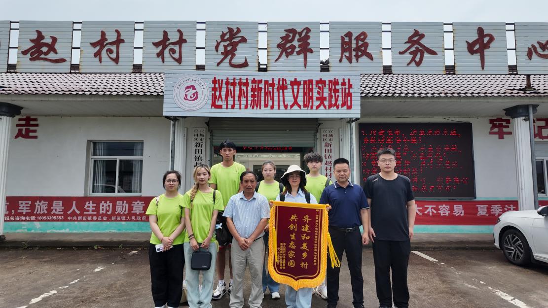 調(diào)研結(jié)束后,團隊在趙村村黨群服務(wù)中心門前,與當?shù)馗刹亢嫌傲裟睿涗浵逻@段探索鄉(xiāng)村振興的經(jīng)歷。