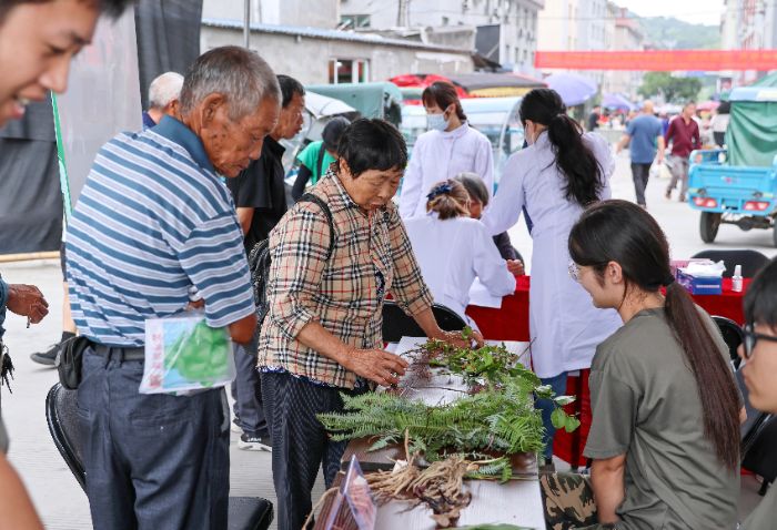 活動當天,盡管烈日高懸,氣溫居高不下,但西陽村村民們的參與熱情絲毫不減。大家紛紛圍在藥材展示區周圍,或認真聆聽隊員講解,或拿起藥用植物仔細觀察,或主動與隊員、鄰里交流互動。期間,不少村民主動分享起代代相傳的民間用藥智慧:“萱草根我們這邊叫金針根,搗爛外敷可以解毒消腫”,“鹽膚木春天的嫩芽能涼拌吃,不僅爽口還能清熱”,“山上的芒萁嚼碎了敷在小傷口上,止血效果特別好”……這些源于生活實踐的鮮活經驗,不僅生動展現了民間醫藥文化的實用價值,也讓科考隊隊員們收獲了書本之外的“知識養分”,真正實現了“隊員科普、村民傳智”的雙向學習、雙向賦能。