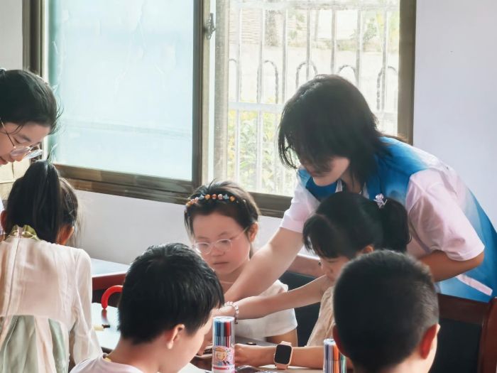 課堂上,隊員們為孩子們搭建AI與法治的認知平臺,注入德育美育的清泉,領著體驗活字印刷術的古韻、手工創作的樂趣,借AI讓畫作綻放靈動;