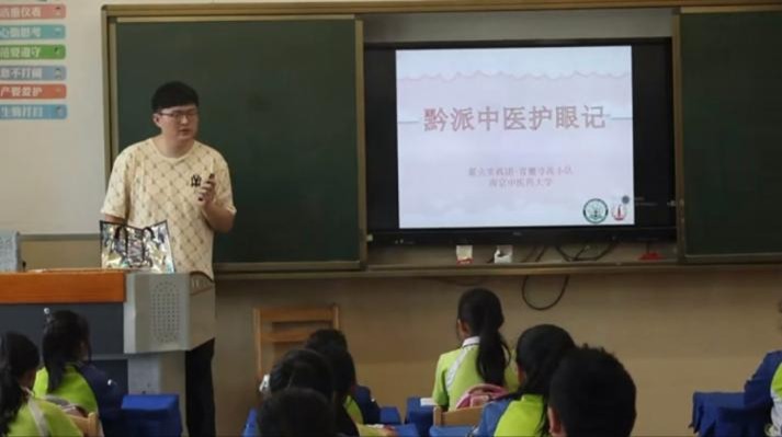 在小學(xué)課堂中,實(shí)踐團(tuán)成員通過(guò)輕松的小游戲與孩子們拉近距離,介紹了眼睛的基本結(jié)構(gòu)和日常保護(hù)的重要性,巧妙地將話題引向博大精深的中醫(yī)藥護(hù)眼智慧。互動(dòng)環(huán)節(jié)中,隊(duì)員們分發(fā)了精心制作的中式護(hù)眼宣傳冊(cè),并結(jié)合內(nèi)容進(jìn)行生動(dòng)講解,穿插有獎(jiǎng)問(wèn)答,現(xiàn)場(chǎng)氣氛熱烈。