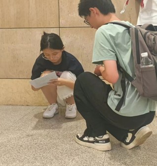 觀眾互動的觀察與問卷實踐 在參觀過程中,隊員們留意到該展區吸引了不少對中醫藥感興趣的觀眾。一些中老年參觀者在《女科》展柜前駐足良久,也有年輕父母帶著孩子,指著“精氣神”大字講解中醫養生理念。這種不同代際的關注,印證了傅山醫學在民間的認知基礎與實用吸引力。基于此觀察,下午,團隊成員在博物院公共區域開展了問卷調查。隊員們結合展陳內容設計問題,重點了解公眾對傅山醫學的知曉度、認知來源、是否接觸過傅山女科方劑以及對中醫藥文化傳承的態度。