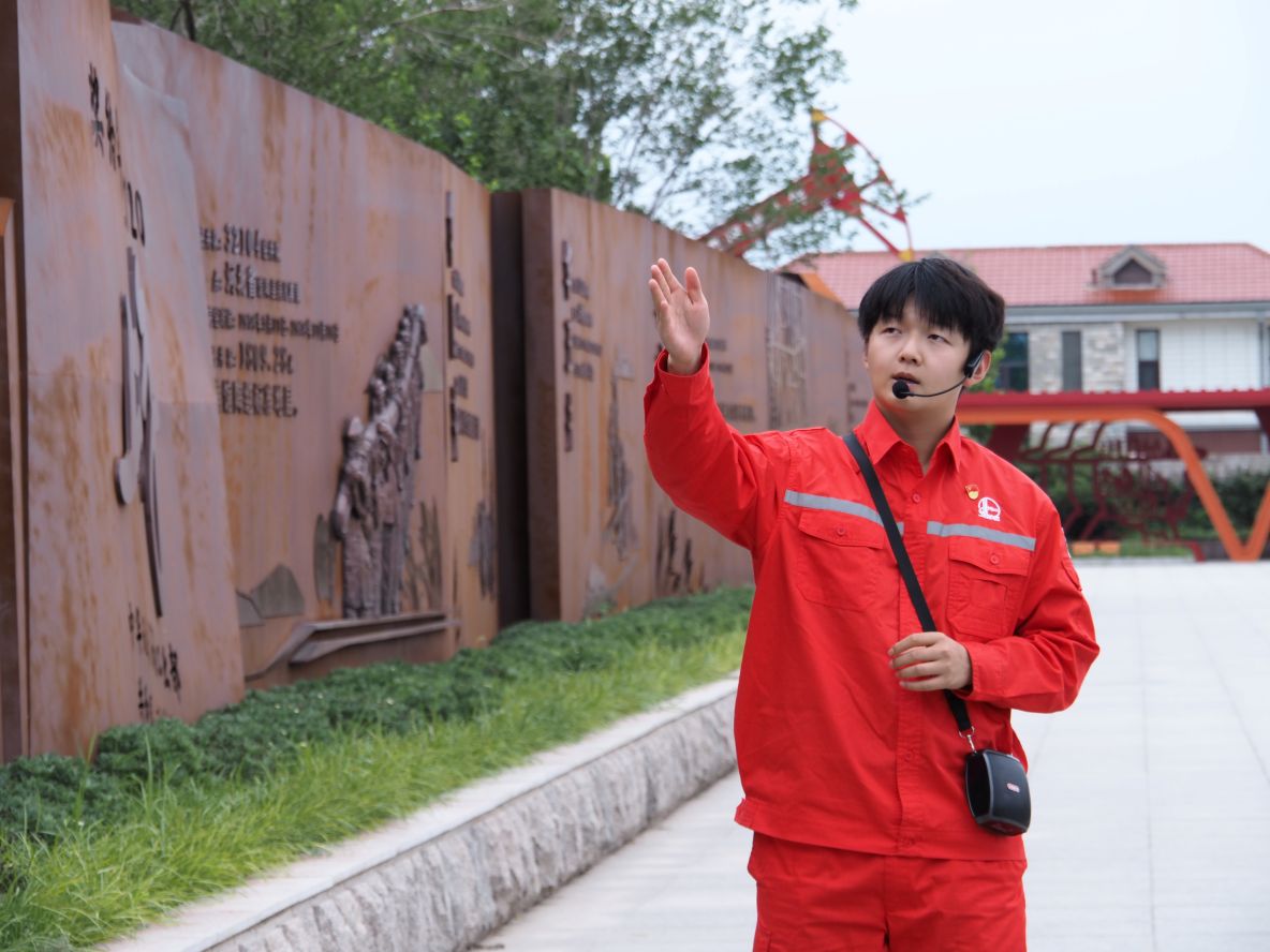 在講解員的引導(dǎo)下,實踐團首先步入“叩問華北”展區(qū)。一條80米的歷史長廊,靜靜鋪陳從華一井至華八井的崢嶸歲月。一張張珍貴影像,無聲卻有力地記錄下老一輩石油人“有條件要上,沒有條件創(chuàng)造條件也要上”的錚錚誓言;厮萆鲜兰o五六十年代,勘探者們以鉆機為筆、大地為卷,在艱難困苦中叩開華北油藏的大門,徹底改寫“華北無油”的歷史定論。實踐團成員凝神駐足,深受震撼,于歷史回響中觸摸那段熱血沸騰的找油傳奇。