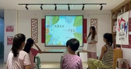 在上午,志愿者們通過(guò)圖文并茂的PPT,圍繞“早餐”這一主題,為小朋友們生動(dòng)講解著早餐的定義與歷史以及早餐的價(jià)值,助力孩子們對(duì)健康飲食形成基礎(chǔ)認(rèn)識(shí)。講解過(guò)程中,孩子們認(rèn)真聽(tīng)講,并積極舉手互動(dòng)提問(wèn),在歡快的交流與學(xué)習(xí)里,慢慢懂得如何健康飲食。