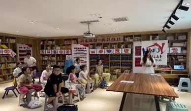 隨后進(jìn)入趣讀繪本環(huán)節(jié),志愿者們展示《肚子里有個(gè)火車(chē)站》,繪聲繪色地講述著小姑娘朱莉婭肚子里的故事。當(dāng)聽(tīng)到肚子里的小精靈因?yàn)橹炖驄I狼吞虎咽和吃太多冰淇淋、巧克力奶昔而遇到麻煩,甚至舉行抗議活動(dòng)時(shí),孩子們時(shí)而緊張,時(shí)而大笑。這個(gè)充滿(mǎn)童趣的故事,讓孩子們?cè)跉g樂(lè)中明白了好好吃飯、健康飲食的重要性。