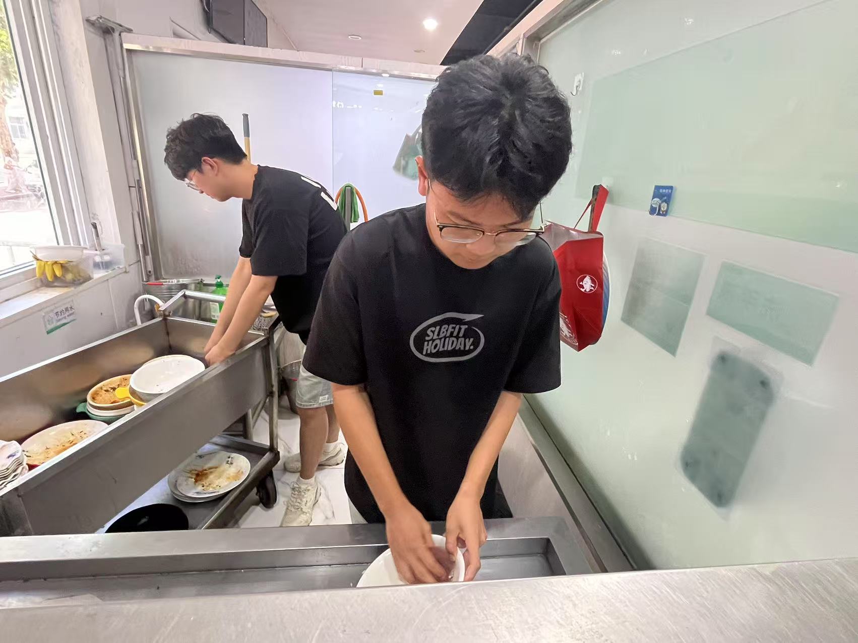 圖為實踐團成員幫助養老院洗碗
