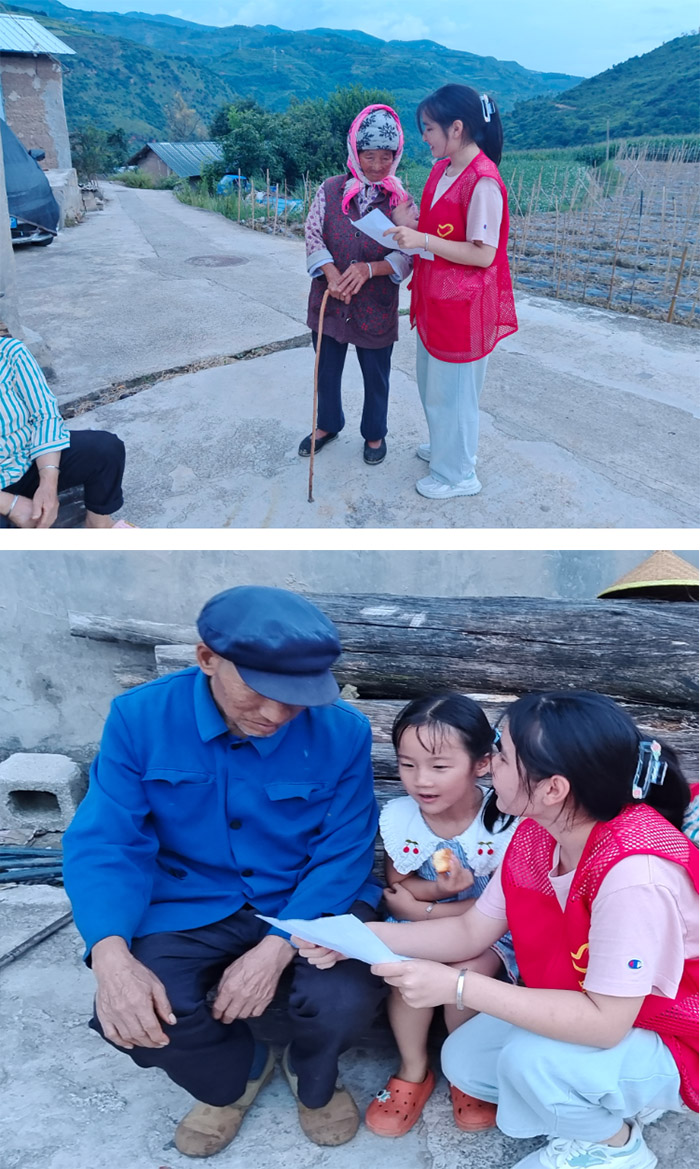 01入戶聽聲:問卷為媒,聯(lián)結(jié)心與心的距離 推普服務(wù)隊的志愿者們率先踏入田壩村的家家戶戶,展開簡短訪談與簡易問卷調(diào)查。每一扇門扉后,都涌動著村民淳樸的熱忱。志愿者與村民圍坐一處,以親和話語問詢?nèi)粘=涣髦衅胀ㄔ挼氖褂们闆r、遭遇的難題及學(xué)習(xí)需求。從老者帶著鄉(xiāng)音的絮語,到年輕父母對子女語言教育的關(guān)切,字字句句都承載著鄉(xiāng)村對更廣闊交流世界的向往。志愿者們悉心記錄每一份需求,為后續(xù)推普工作錨定精準方向,再添鄉(xiāng)土溫度。