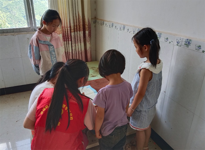 02 書桌相伴:讓普通話浸潤暑假時光 暑假里,村里的留守兒童成為志愿者們重點關(guān)懷的對象。在部分留守兒童家中,孩子們簇擁在志愿者身旁,嘰嘰喳喳詢問暑假作業(yè)的難題。志愿者們化身“小老師”,逐字糾正拼音發(fā)音;如果遇到孩子以方言表達,他們便含笑引導(dǎo)“試試用普通話再說一遍”。大家一同朗讀課文,以標準普通話講述故事,讓孩子們在輕松氛圍中體悟語言的魅力。書桌前的耐心陪伴,不僅為孩子們解開作業(yè)困惑,更讓普通話成為這個暑假最溫情的“伙伴”。