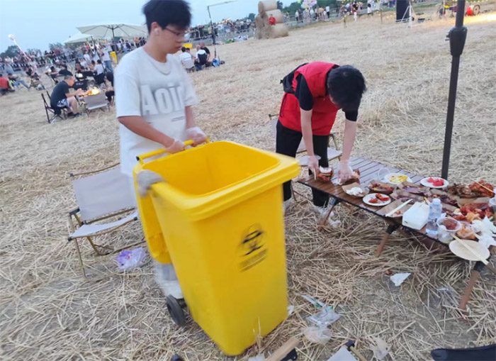 后期清潔:會場清理,保持整潔環境 音樂會后,志愿者們積極進行了會場清潔活動,清理音樂會參與垃圾,做到綠色活動,減少污染。