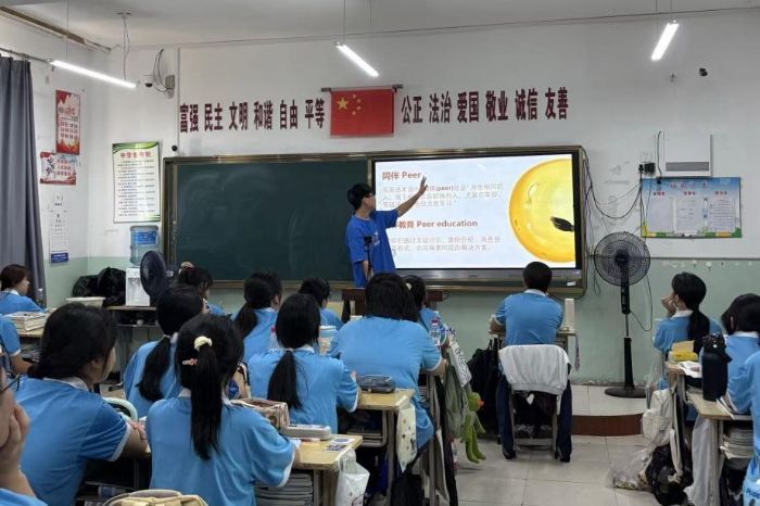 與此同時(shí),實(shí)踐隊(duì)成員翁佳靈走進(jìn)福州連江縣金安社區(qū),為即將升入高中的學(xué)生開(kāi)展活動(dòng)。她先以自身學(xué)習(xí)經(jīng)歷拉近距離,分享初高中差異,再圍繞青春期戀愛(ài)話題介紹愛(ài)情四種類型,并借此機(jī)會(huì)科普了艾滋病預(yù)防知識(shí)。活動(dòng)過(guò)程中,她始終與學(xué)生如同伴般平等交流,既緩解了學(xué)生開(kāi)學(xué)焦慮,傳遞了健康成長(zhǎng)理念,更獲得了積極反饋。