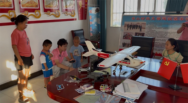 實踐團成員給小朋友們科普無人機相關知識。曹瑋肖 供圖