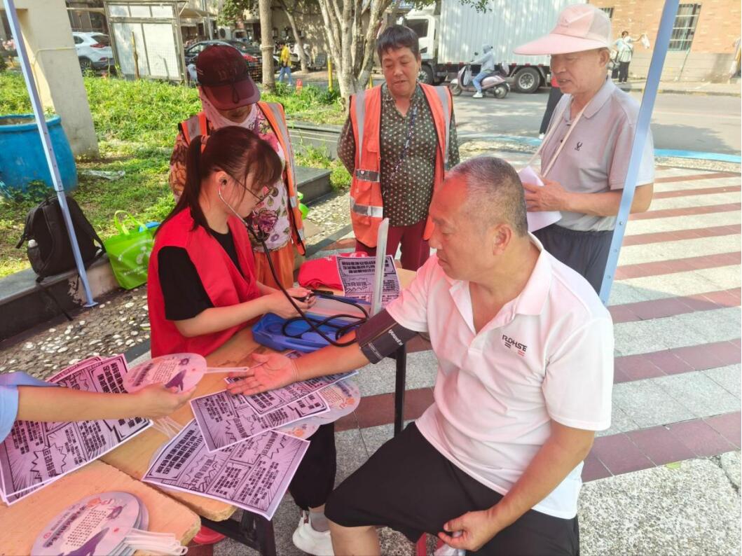 活動開始后,首先,團隊在與龍湖春天社區聯系后,幫助其設立臨時義診點,科普健康飲食和減肥的知識,同時提供血壓測量服務,記錄并分析社區人員的血壓狀況。針對血壓異常者,詢問學校老師和衛生室醫生的建議,給血壓異常者提供初步的專業健康建議和就醫指導,并發放健康減肥宣傳資料,普及高血壓等常見疾病的預防知識。此次義診活動得到了龍湖春天社區的大力表揚。