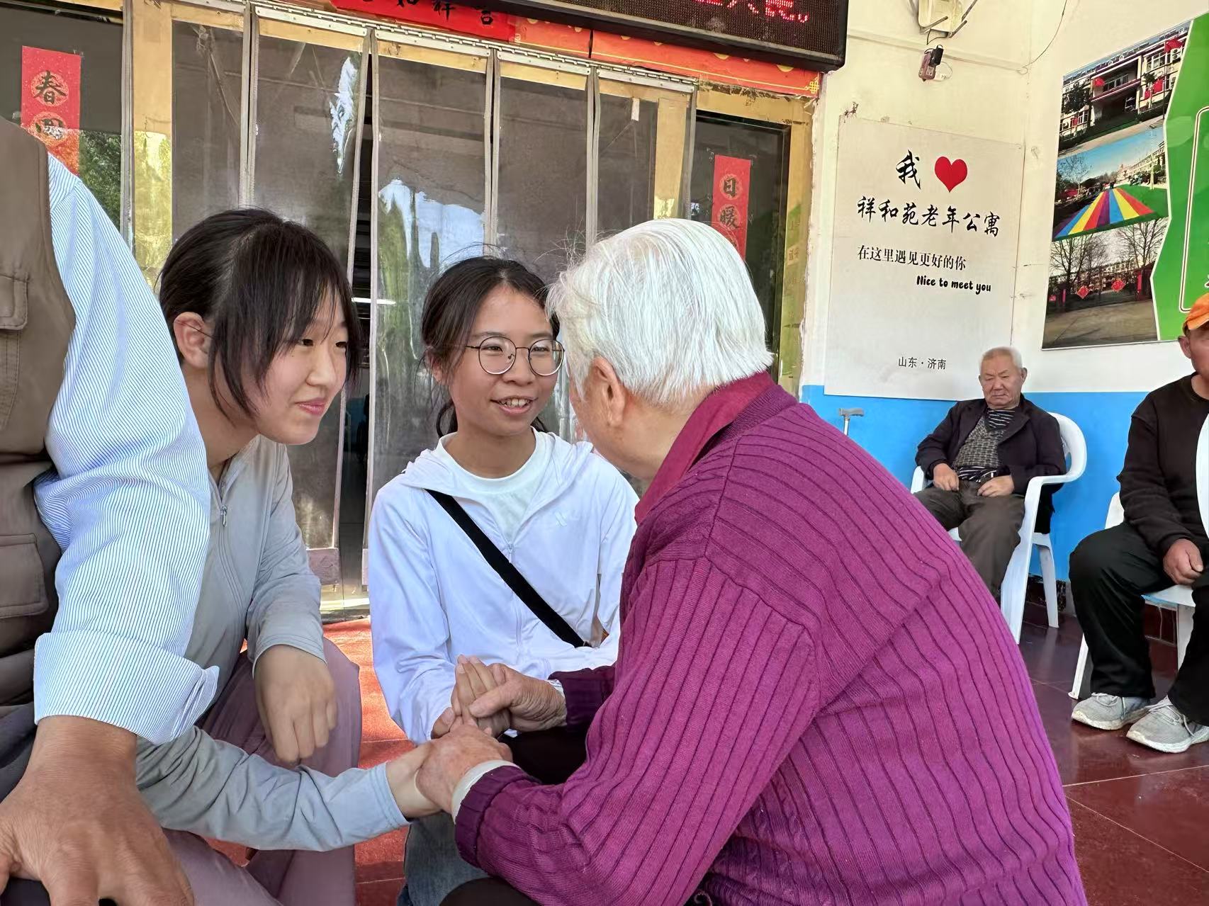 對于實踐團成員們的到來,老人們難掩內心的喜悅與歡迎。一位老人拉著實踐團成的手說道:“你們就像我的親孫子、親孫女一樣,看到你們來,我這心里高興啊,感覺日子都亮堂了起來!”活動期間,老人們始終被實踐團成員們的熱情所包圍,他們積極參與每一項活動,眼神中透露出對陪伴的渴望和對關愛的珍惜,對實踐團成員們的每一個舉動都報以熱烈的回應和由衷的感激。