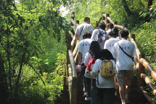 圖為團隊成員與劍門關景區講解員尹垚老師漫步于古蜀道精華地段,聆聽講解,實地學習蜀道文化。