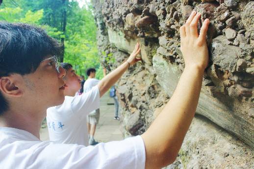 圖為團隊成員在劍門關景區感受景區內的地質特征。
