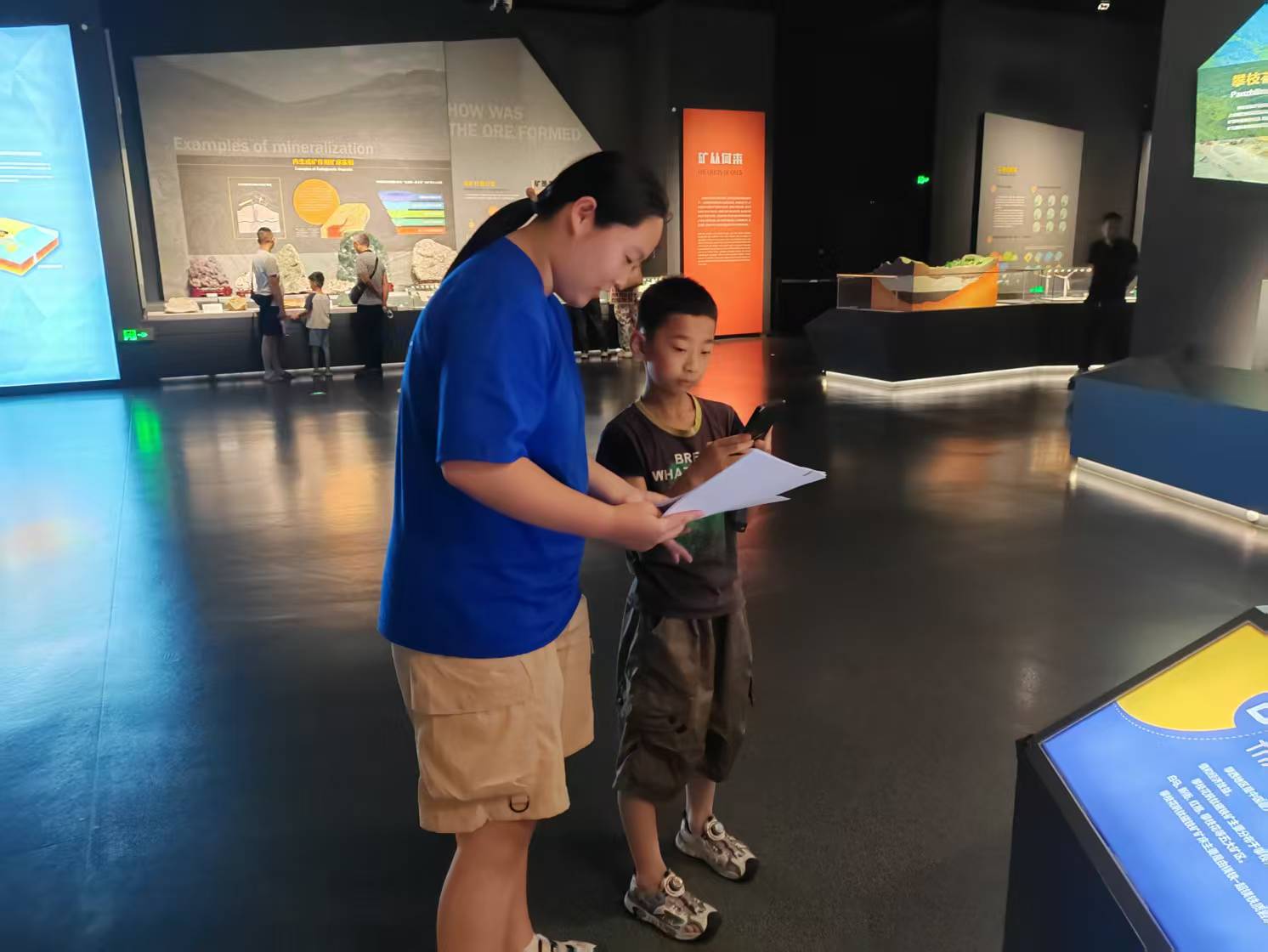 面向孩童群體:團(tuán)隊(duì)成員李欣悅蹲下身,用手中的鈾礦勘探模型模擬“地質(zhì)尋寶”,“小朋友們看,這個(gè)小錘子就像當(dāng)年叔叔阿姨用的工具,我們要找到‘藏起來’的鈾礦石,才能為國(guó)家造‘大國(guó)盾牌’哦!”生動(dòng)的比喻讓孩子們圍在模型旁,舉手提問“礦石怎么變成原子彈”“地質(zhì)錘重不重”,現(xiàn)場(chǎng)充滿好奇與童趣。
