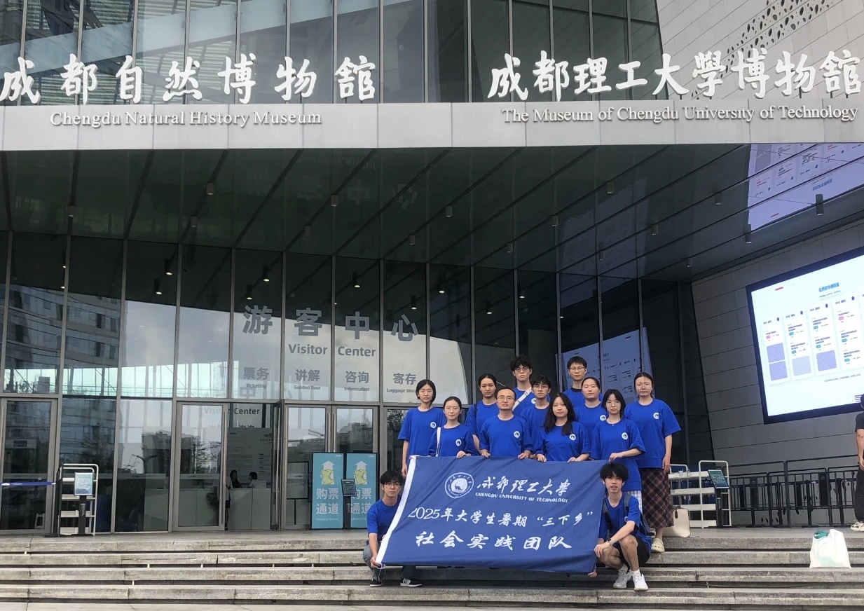 7月1日清晨,成都理工大學(xué)自然博物館門前的晨光中,“核輝礪盾・箭溯長(zhǎng)風(fēng)”社會(huì)實(shí)踐團(tuán)隊(duì)的20余名成員身著統(tǒng)一藍(lán)色實(shí)踐服,整齊列隊(duì)在“成都自然博物館”與“成都理工大學(xué)博物館”的雙標(biāo)牌下,舉起印有三下鄉(xiāng)社會(huì)實(shí)踐團(tuán)隊(duì)的旗幟合影——這場(chǎng)為期15天的“三下鄉(xiāng)”實(shí)踐活動(dòng),以博物館專題宣講為起點(diǎn),正式拉開序幕。