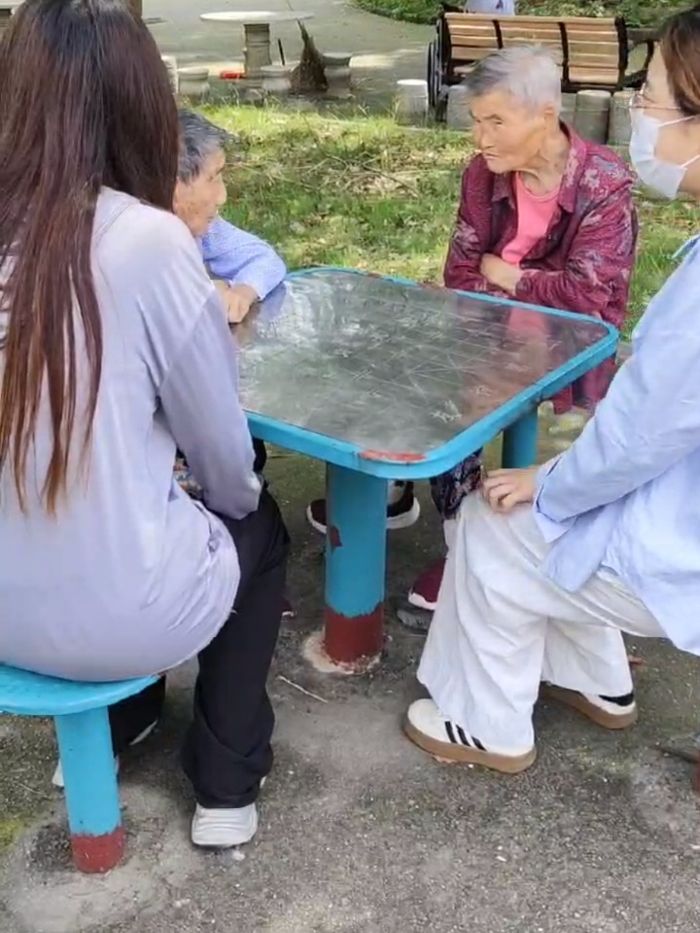 有的坐在老人身邊,靜靜聆聽他們講述過去的故事——田間勞作的艱辛、生活里的難忘瞬間;有的細心詢問老人的日常起居和身體狀況,叮囑他們注意添減衣物。老人們的話語里滿是對歲月的回憶與對生活的感悟,隊員們認真回應,偶爾分享校園趣事,現場氛圍溫馨又融洽。青春的身影與慈祥的笑容相映,讓陪伴成為最溫暖的禮物。