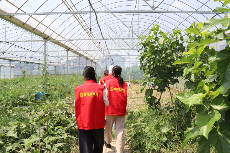 圖為實(shí)踐團(tuán)成員參觀四季瓜果采摘基地