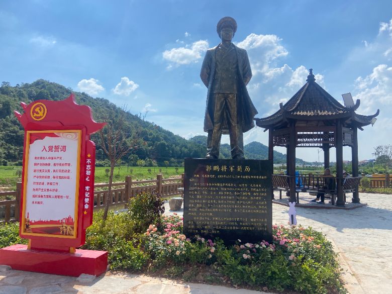 這里不僅有著秀美的自然風(fēng)光與蓬勃發(fā)展的特色產(chǎn)業(yè),更是開國(guó)中將郭鵬將軍的故鄉(xiāng)。金橋社區(qū)內(nèi),以開國(guó)中將郭鵬命名的紀(jì)念廣場(chǎng)莊嚴(yán)肅穆,不僅銘刻著將軍的豐功偉績(jī),更承載著厚重的紅色歷史記憶。廣場(chǎng)上矗立著的郭鵬將軍的雕像,將軍身姿挺拔、目光堅(jiān)毅,凝視著這片土地,又仿佛是在追憶往昔浴血奮戰(zhàn)的崢嶸歲月。郭鵬廣場(chǎng)不僅是紀(jì)念郭鵬將軍的重要場(chǎng)所,更是深入群眾開展愛國(guó)主義教育的生動(dòng)典范,傳承紅色精神的同時(shí),將紅色文化與鄉(xiāng)村振興融合發(fā)展,釋放更大的經(jīng)濟(jì)動(dòng)能。