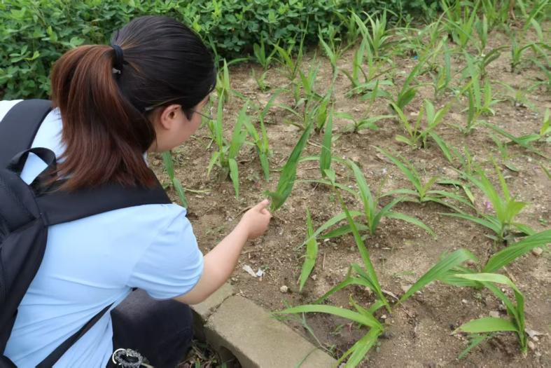 實踐團成員蹲下身觀察白芨葉片,記錄其生長周期數據。并感慨到:“課本上的‘道地性’終于有了實體對照,這種產學研結合的模式正是行業需要的!”