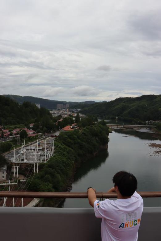 圖為梅山水壩前留影(沈威 攝)
