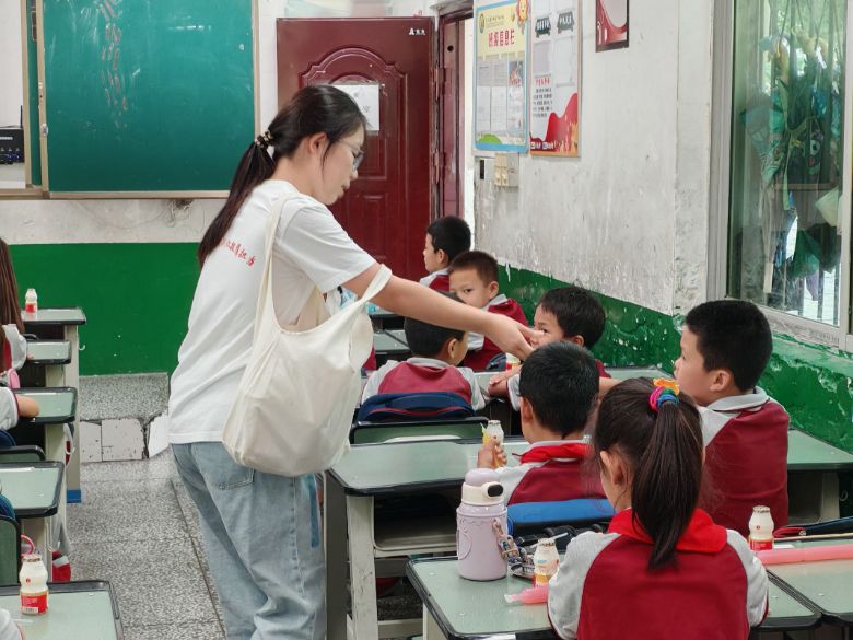 圖二:志愿者為學生們發放獎品 仲思萌攝