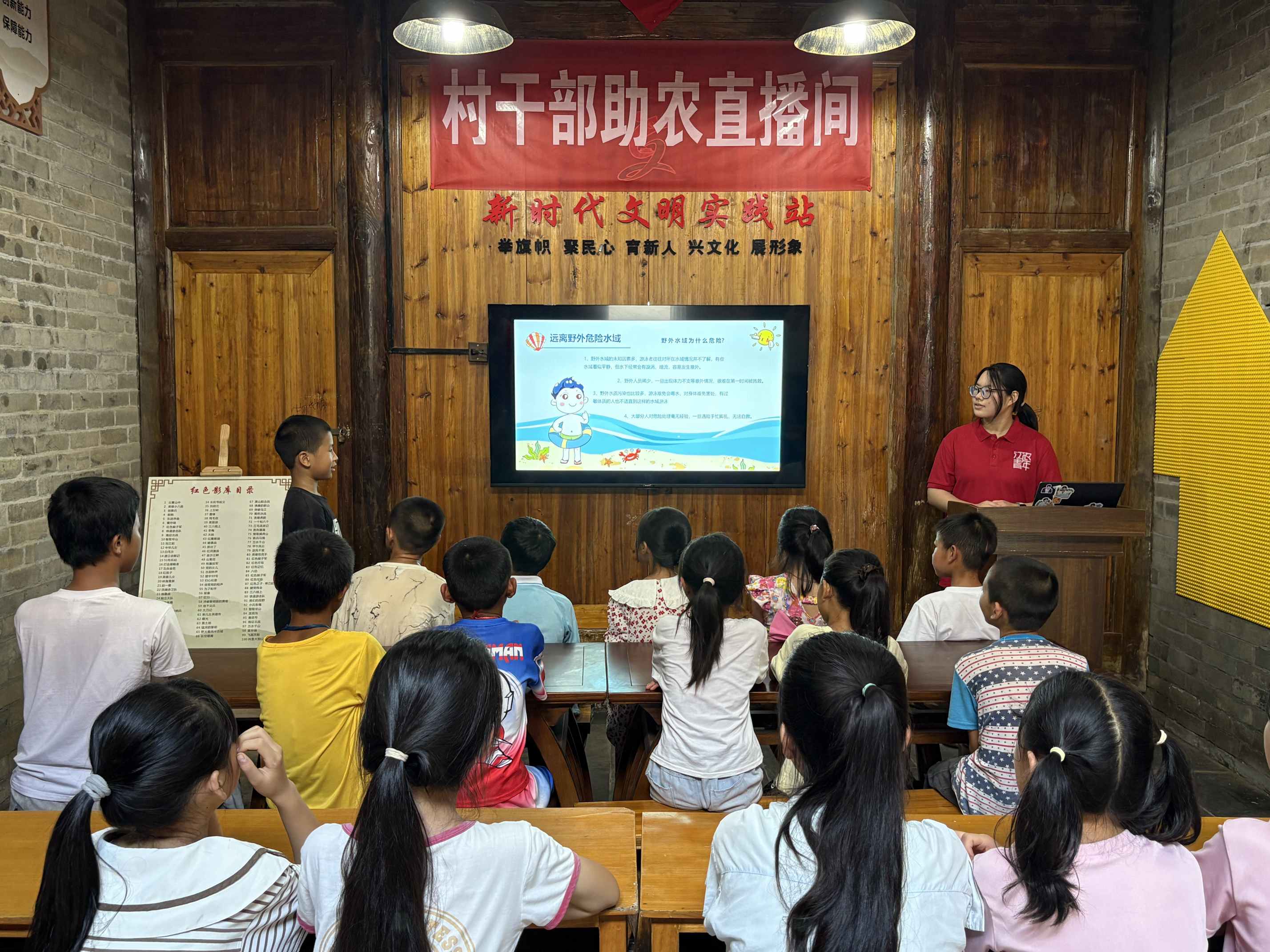 為筑牢暑期安全防線,隊(duì)員們開展防溺水安全宣講,以模擬場景與互動問答的形式,變抽象知識為具體技能,引導(dǎo)孩子們掌握實(shí)用的自救互救方法。在“遇到同伴落水該如何施救”的討論環(huán)節(jié),孩子們踴躍發(fā)言,稚嫩的回答中已能清晰闡述沉著應(yīng)對的思路;顒舆播放了警示教育短片,以真實(shí)案例敲響警鐘,讓“生命至上、安全第一”的理念深植童心,為鄉(xiāng)村孩子筑牢一道堅(jiān)實(shí)的思想防線。