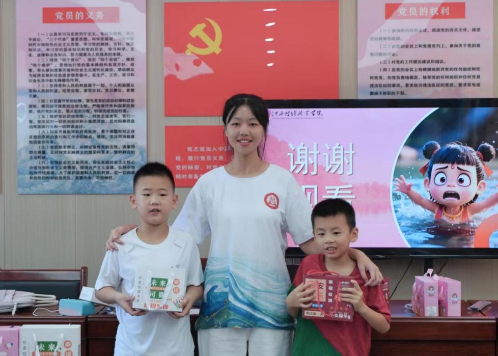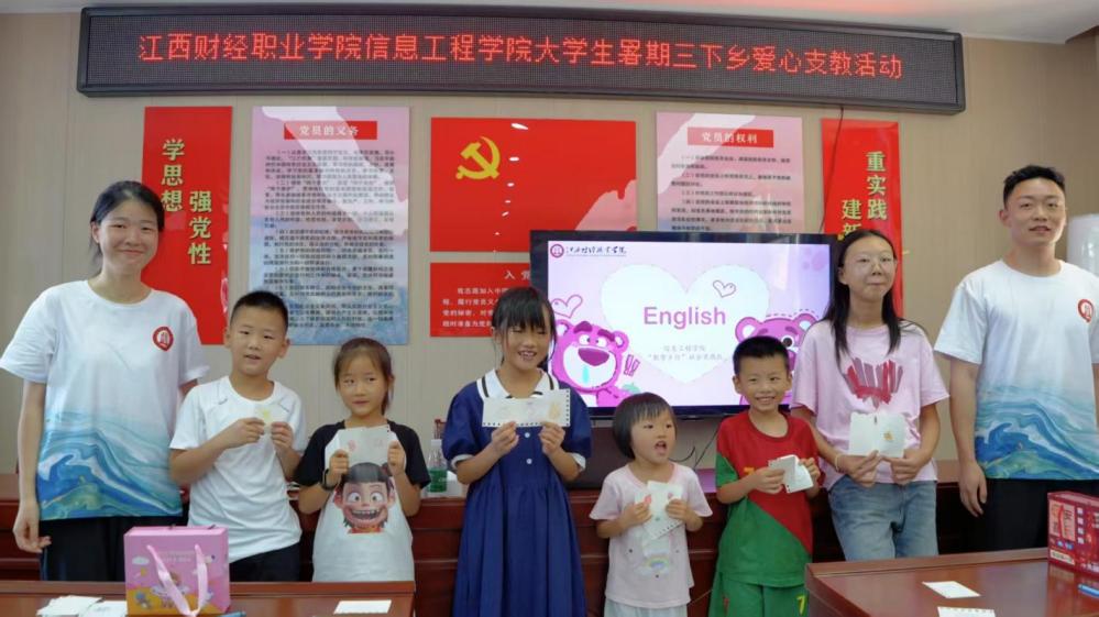 在國家鄉(xiāng)村振興戰(zhàn)略的澎湃浪潮中,教育振興成為點(diǎn)亮鄉(xiāng)村未來的關(guān)鍵火種,7月2日,江西財(cái)經(jīng)職業(yè)學(xué)院信息工程學(xué)院“數(shù)智鄉(xiāng)行”社會實(shí)踐隊(duì)在彭剛老師的帶領(lǐng)下,走進(jìn)九江市江洲鎮(zhèn)官場村,開展主題為“數(shù)智賦能鄉(xiāng)村教育”的愛心支教活動。實(shí)踐隊(duì)充分發(fā)揮專業(yè)優(yōu)勢,將數(shù)字化技術(shù)與創(chuàng)新教學(xué)模式相結(jié)合,為當(dāng)?shù)貎和瘞砩鷦佑腥さ奶厣n程,并贈送學(xué)習(xí)用品,以實(shí)際行動助力鄉(xiāng)村教育發(fā)展。