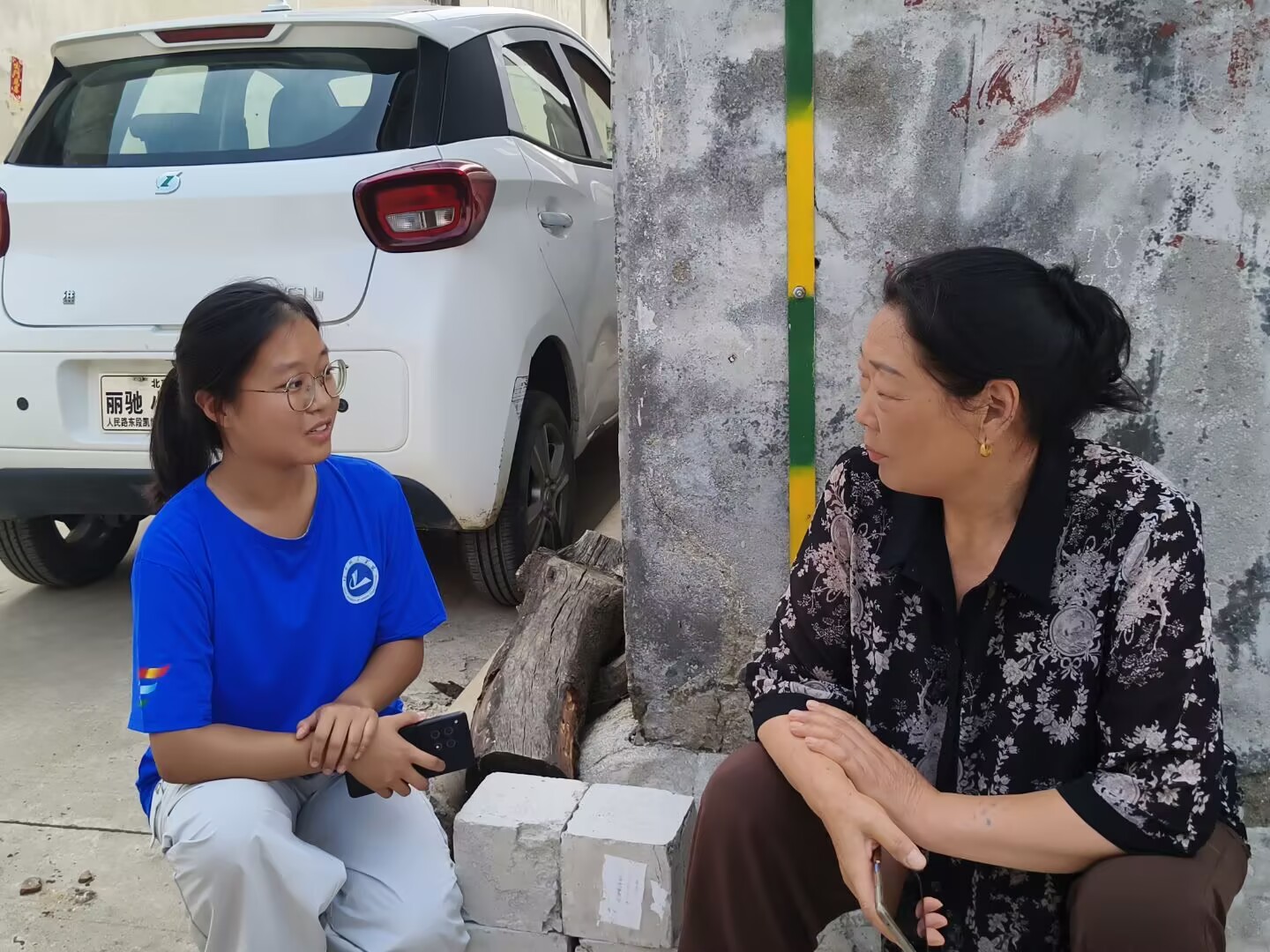 圖為實(shí)踐隊(duì)開展入戶走訪調(diào)研村民普通話水平 劉喜蝶攝