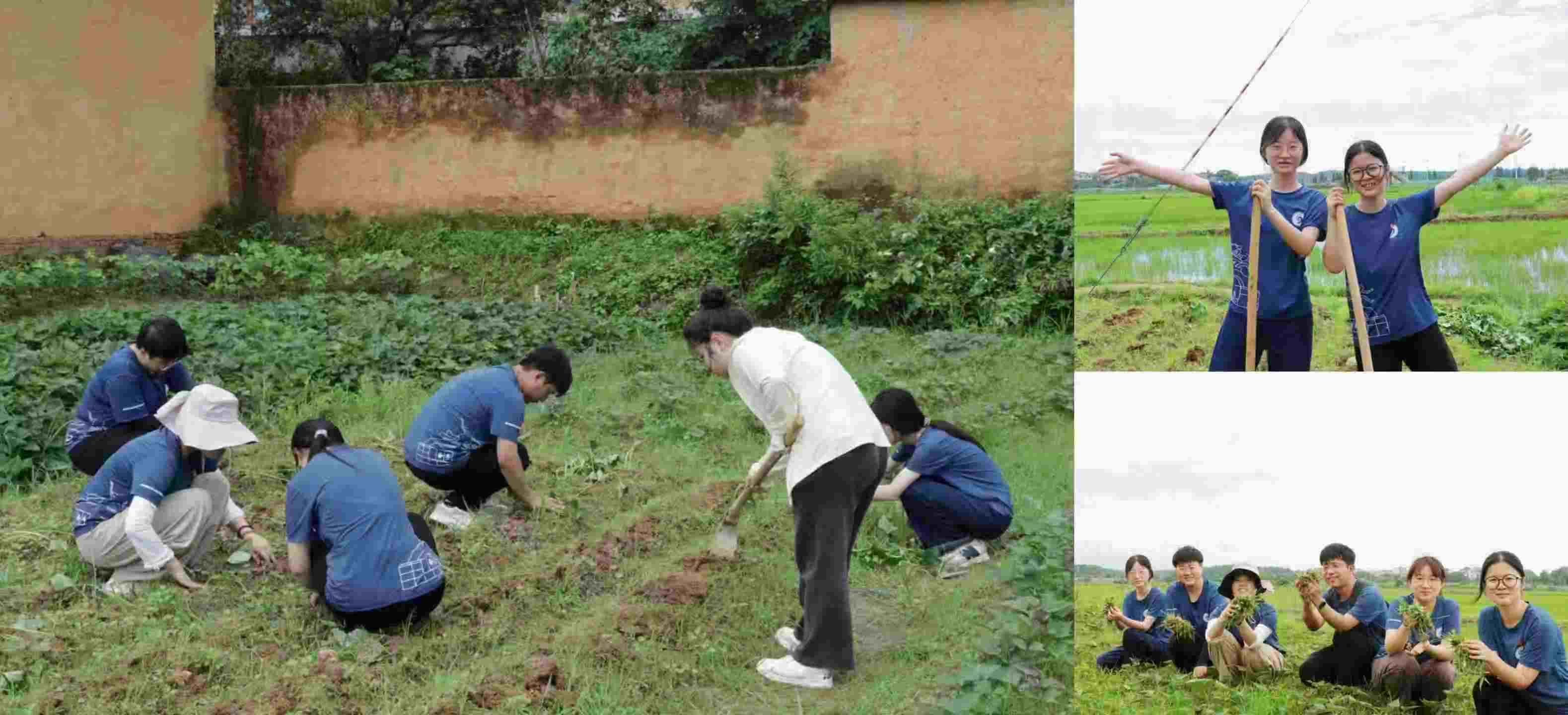 采訪結(jié)束后,實踐隊員們來到共青墾荒文化體驗園里體驗種紅薯,指導人員細心教導大家如何剪紅薯苗、如何插紅薯苗,隊員們紛紛挽起褲腳、拿起農(nóng)具,體驗除草、鋤地的勞作。烈日下,汗水濕透了衣衫,但每個人的臉上都綻放著燦爛的笑容,笑容里藏著初嘗農(nóng)事的驚喜,也藏著與土地對話的自豪。泥土沾滿掌心,卻讓隊員們觸摸到了勞動最真實的溫度;腰酸背痛,卻讓大家體會到了耕耘的艱辛與快樂。