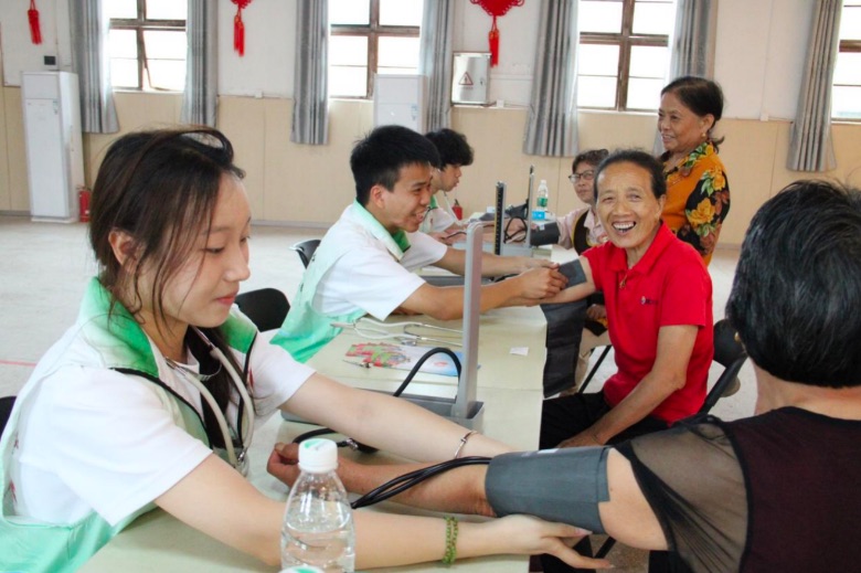 實踐隊隊員為南昌縣塔城鄉(xiāng)鄉(xiāng)民義診(沈嘉玘/攝)