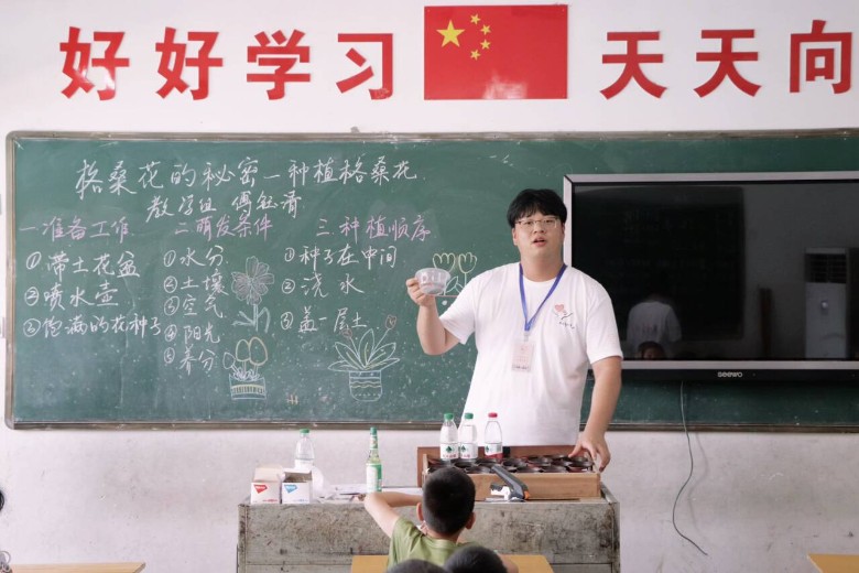 為充分發(fā)揮地理專業(yè)知識優(yōu)勢,助力鄉(xiāng)村教育力量發(fā)展與振興,引導(dǎo)地理與旅游學(xué)院學(xué)子運(yùn)用專業(yè)知識為提高鄉(xiāng)村兒童科學(xué)素養(yǎng)貢獻(xiàn)青春力量。在7月2日-7月3日的暑期愛心托管班中,志愿者們精心設(shè)計趣味地理知識小課堂,用知識為孩子們打開夢想的窗,讓愛傳播向更遠(yuǎn)的地方。