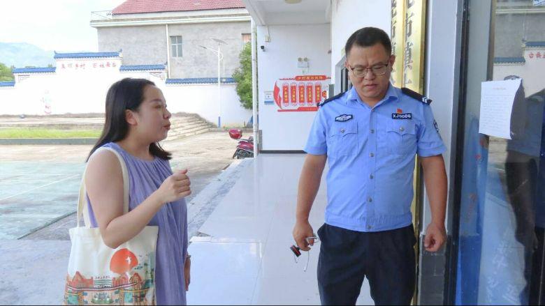 圖為外國語學(xué)院團(tuán)總支負(fù)責(zé)人王琪斐與村委會進(jìn)行交流(于蕓 攝)