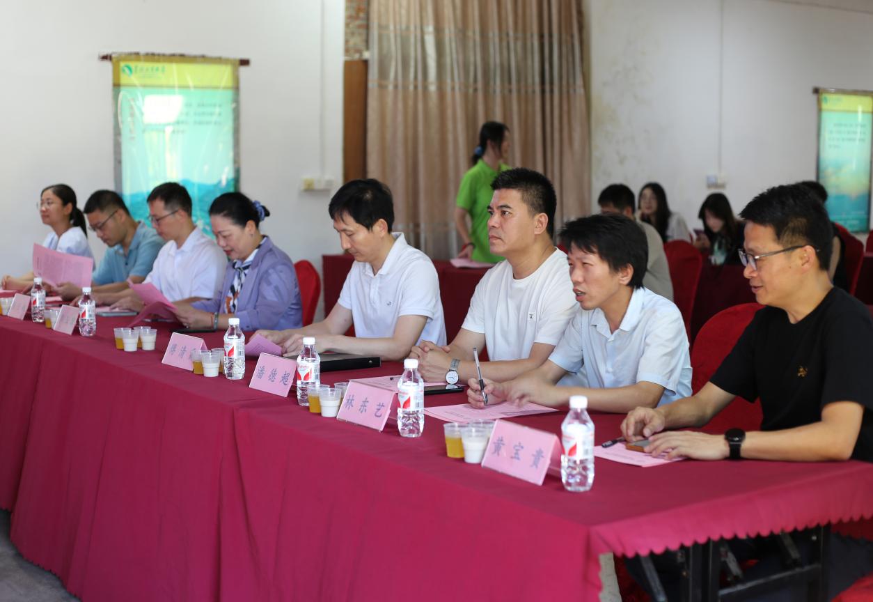 郭玉瓊院長、傅清霖書記分別圍繞“勉勵學生繼續發揮專業所長為鄉村振興貢獻福農智慧”“持續深化合作讓校地共建再結碩果”進行發言。活動現場,三下鄉實踐隊學生代表展示了結合眉山特色資源設計研發的四款新式茶飲、百香果IP形象展示、茶中藥香囊等產品。其中,在安溪茶學院林東藝老師的指導下,以眉山鄉當地盛產且品質優良的紅茶和鐵觀音作為核心茶基底并將當地特色農產品作為主要原料,研發的四款新式茶飲備受好評。同時詳細匯報了圍繞當地特色農產品進行考察,特別是新式茶飲研發所取得的扎實進展,獲得與會領導和老師的充分肯定。