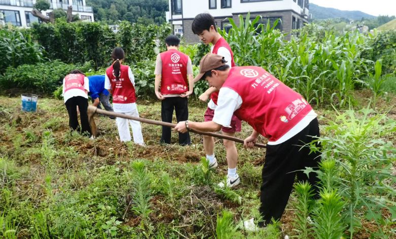 助農(nóng)隊(duì)員幫助村民鋤地 徐建豪 蔡子騰攝