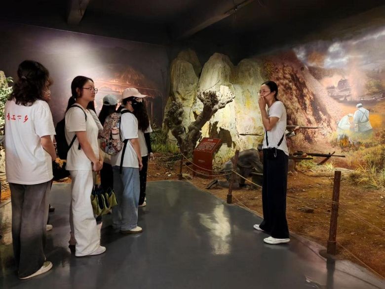 在講解員的帶領下,實踐團隊成員們依次參觀了紀念碑、紀念館、烈士墓區等場所。成員們認真聆聽戰爭中七千健兒在東進抗日卻遭受陰謀的沉痛過往和突圍將士們在絕境中堅守信仰、浴火成長的英雄事跡。成員們駐足在展柜前閱讀泛黃的文獻、銹跡斑斑的武器和珍貴的歷史照片,深切感受著革命先烈們面對生死考驗時的無畏與忠誠。