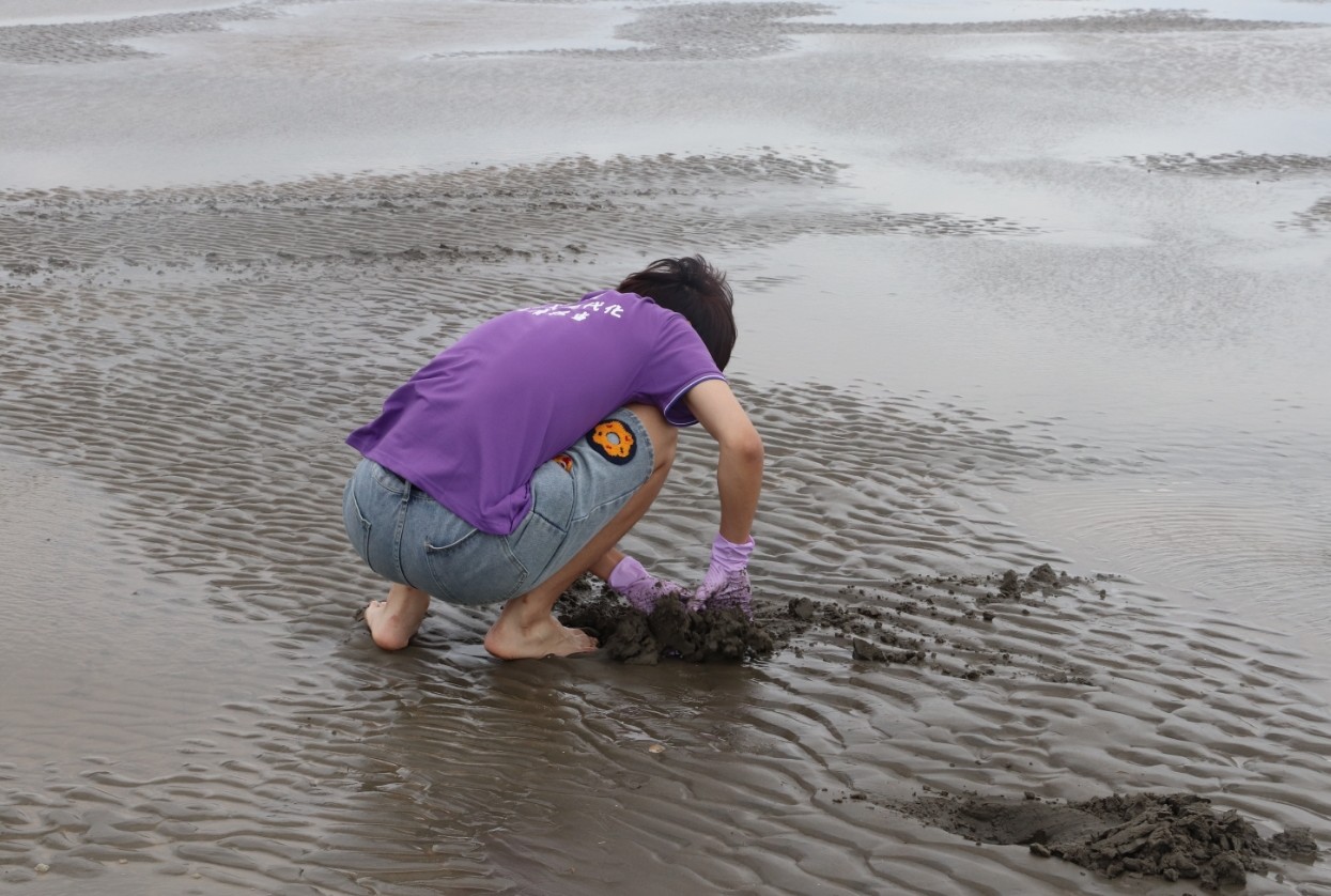 非遺課堂:灘涂上的“海洋芭蕾”,綿延數(shù)公里的金色灘涂隨著潮水退去展露真容,實(shí)踐團(tuán)成員赤腳踏入這片天然課堂。在漁民示范下,他們學(xué)習(xí)運(yùn)用獨(dú)特的“扭、踩、摸”三步古法技藝尋找藏在沙層下的文蛤。現(xiàn)場(chǎng)漁民還介紹,文蛤捕撈需遵循特定時(shí)節(jié)與手法,這份傳承千年的技藝本身就是對(duì)海洋資源的敬畏與守護(hù)。