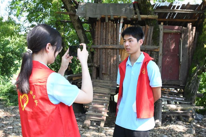 圖為懷化學(xué)院外國(guó)語學(xué)院SunshineAction志愿服務(wù)小隊(duì)在大坪村參與龍舟訓(xùn)練(米慧瑤攝)