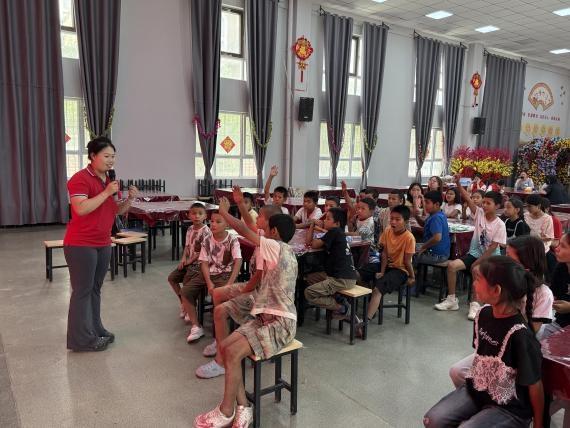 緊隨書記動(dòng)員,實(shí)踐團(tuán)負(fù)責(zé)人連章潔為孩子們帶來(lái)意義深遠(yuǎn)的“開班第一課”。她通過(guò)生動(dòng)的講解,讓孩子們了解了“七一”建黨節(jié)背后的歷史故事。在課程最后,“我們是中華民族,我們要永遠(yuǎn)跟黨走”的堅(jiān)定誓言在課堂響起,孩子們清澈的眼眸中閃耀著強(qiáng)烈的認(rèn)同感。“沒(méi)有共產(chǎn)黨就沒(méi)有我們今天的好日子!”孩子們稚嫩卻堅(jiān)定的聲音,正是紅色基因在心中生根的見(jiàn)證。