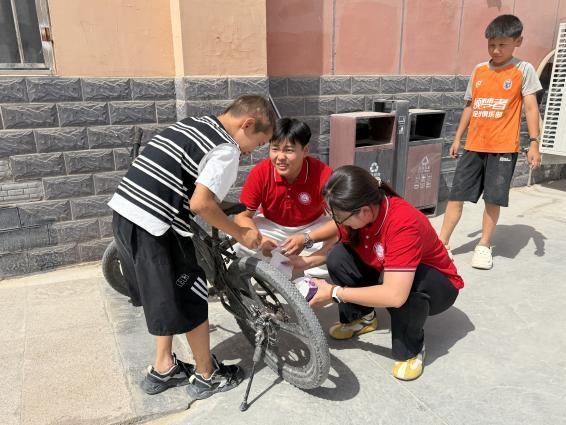 在下午的課堂上,團(tuán)隊(duì)成員通過(guò)“實(shí)踐+分享”的模式,給孩子們帶來(lái)了一場(chǎng)生動(dòng)的實(shí)踐課。孩子們戴上手套、拿起工具,在團(tuán)隊(duì)成員帶領(lǐng)下投身“社區(qū)衛(wèi)生我守護(hù)”的愛(ài)護(hù)社區(qū)衛(wèi)生活動(dòng),為共同營(yíng)造一個(gè)整潔、文明、和諧的社區(qū)環(huán)境做出努力。隨后,“我講故事你來(lái)聽(tīng)”的故事分享環(huán)節(jié)讓室內(nèi)溫情洋溢。實(shí)踐團(tuán)成員葉子榮深情講述兵團(tuán)前輩屯墾戍邊的感人故事,孩子們也爭(zhēng)相分享身邊長(zhǎng)輩扎根邊疆的奮斗點(diǎn)滴,無(wú)數(shù)感人的兵團(tuán)故事共同匯聚成了點(diǎn)亮理想的冉冉星光。
