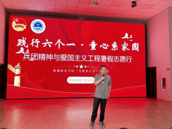2025年7月4日上午,新疆政法學(xué)院“戈壁育紅心”愛(ài)國(guó)主義教育實(shí)踐團(tuán)與第三師四十四團(tuán)十一連的天福社區(qū)攜手,開啟了“六個(gè)一工程”的“三下鄉(xiāng)”社會(huì)實(shí)踐活動(dòng)。首先進(jìn)行了開班儀式,天福社區(qū)黨支部書記對(duì)此次活動(dòng)表示了高度認(rèn)可,他深入闡釋活動(dòng)主旨,強(qiáng)調(diào)在戈壁熱土傳承“熱愛(ài)祖國(guó)、無(wú)私奉獻(xiàn)、艱苦創(chuàng)業(yè)、開拓進(jìn)取”的兵團(tuán)精神對(duì)鑄牢中華民族共同體意識(shí)的時(shí)代意義,并熱情呼吁社區(qū)青少年踴躍參與,感召大家在體驗(yàn)中汲取精神養(yǎng)分。