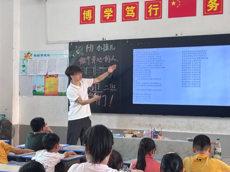“我愛你中國,心愛的母親……”音樂課上,嘹亮的歌聲回蕩在教室。隊員們先講解歌曲背后的故事,再逐句教唱,孩子們用清澈的嗓音表達著對祖國的熱愛。從旋律學唱到情感共鳴,一堂音樂課成為了一次生動的愛國主義教育。“希望紅歌能在孩子們心中種下愛國的種子,讓他們明白今天的幸福生活來之不易,未來要努力為祖國奮斗。”授課隊員說道。