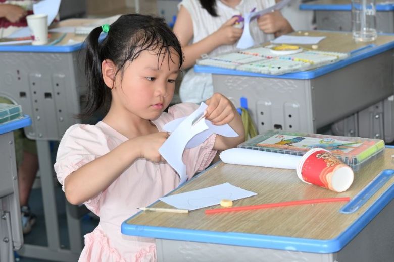 03 美術(shù)課上孩子們認(rèn)真做手工 安徽師范大學(xué)林佳慧提供