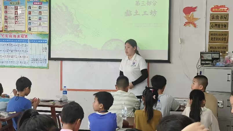 為深化語言學習成效,志愿服務團將粘土手工與語言訓練有機融合。活動前,志愿者依據兒童認知特點定制教學方案,準備紅、黃、藍等8色超輕粘土及工具套裝,以“我的童話家園”為創作主題,分步驟演示揉、搓、捏等技法。6歲兒童在志愿者指導下完成“向日葵”作品,其創作過程中反復練習“花盤(huā pán)”“花瓣(huā bàn)”等詞匯發音,最終實現前后鼻音的準確區分。